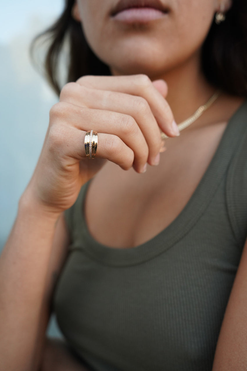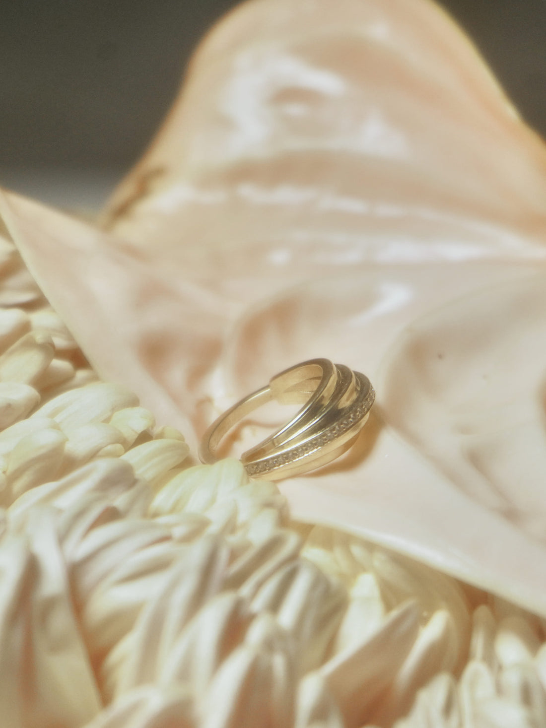 The Jules Ring with diamonds - an exquisite piece inspired by the elegance of the Art Deco era, adorned with intricate diamond details. Crafted with meticulous attention to detail, this ring captures the essence of timeless sophistication and glamour. The Art Deco-inspired design adds a touch of vintage charm, while the shimmering diamonds elevate its beauty to new heights.