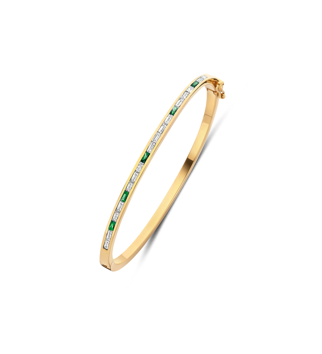 The Dolce Vita Bangle - designed to bring everyday elegance and convenience to your jewellery collection. This beautifully crafted green and white bangle features a discreet secret lock, adding an element of intrigue and sophistication to your look. Meticulously crafted with care and attention to detail, the Dolce Vita Bangle is made to be worn alone for a subtle statement or paired with other bracelets for a more layered, stylish effect. Whether you're dressing up for a special event or adding a touch of elegance to your everyday attire, this bangle is the perfect accessory to complete your look.