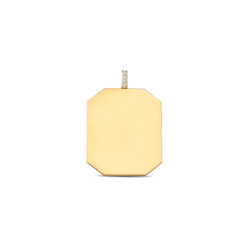 The Large Tag Charm is a bold and refined statement piece designed for personal expression. Featuring a generous engraving surface, this engraveable gold pendant offers ample space for initials, a date, or a meaningful word.