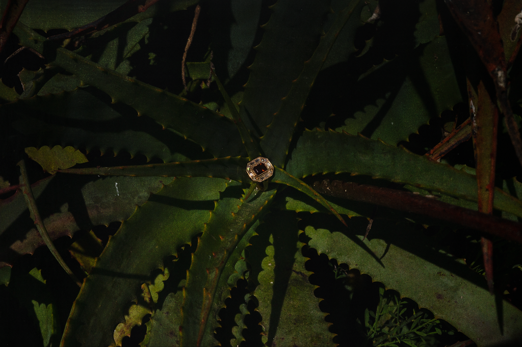 The Paloma Ring - a ring that draws from Art Deco elegance with strong lines, structured geometry, and a thoughtful mix of shapes and tones. Baguette, round, and champagne diamonds meet a single citrine in a bold architectural composition. It's a ring that feels like a sculpture for your hand, timeless, yet distinctly modern.