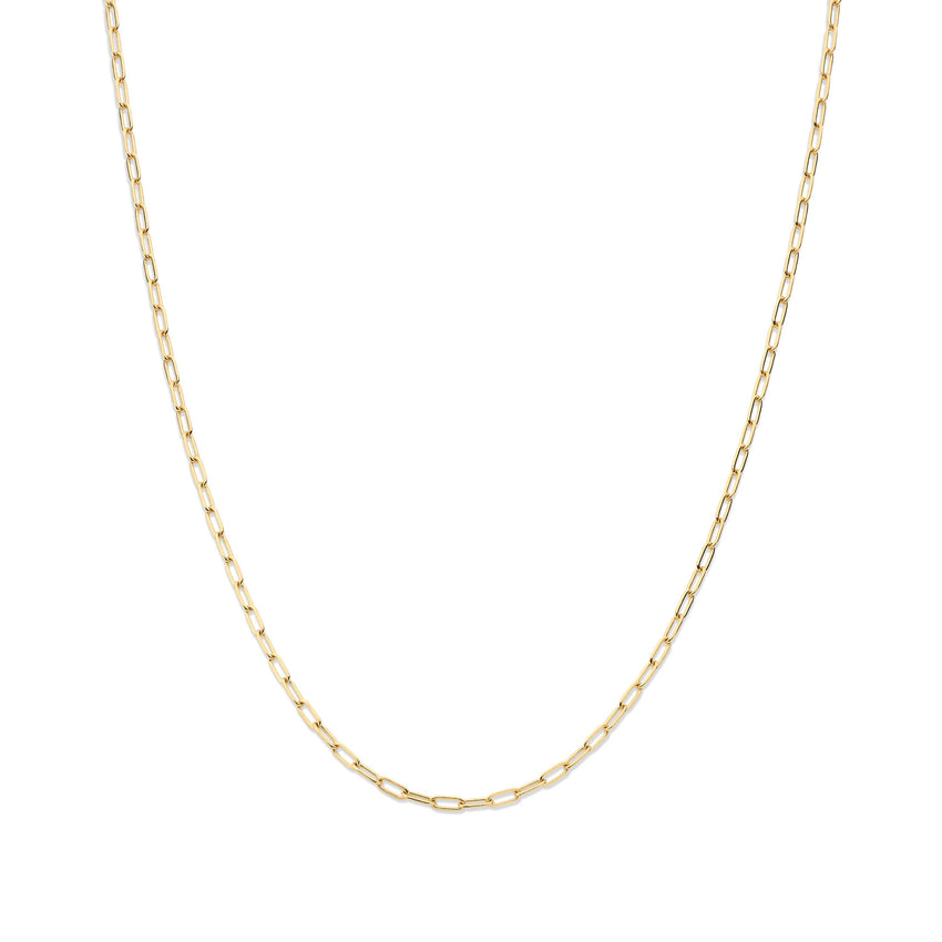 Versatile by nature, the Paperclip Chain serves as a foundational piece for layering with charms, pendants, or other necklaces. Its sleek, linear design allows it to transition effortlessly from everyday styling to more elevated occasions.