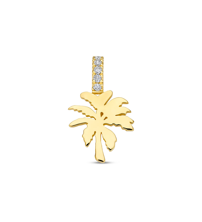 Signature Palm Tree Charm, a delicate ode to the Paradise Lovers and one of our most iconic symbols. Crafted in 18k yellow gold, the Signature Palm Tree Charm features our recognisable palm silhouette . Refined, detailed, and designed to bring a touch of sunshine to your everyday. Its bellière is set with five brilliant diamonds, a subtle signature element present across all our charms, adding effortless sparkle without overpowering the piece. Wear it solo for a clean, radiant look or layer it with other charms to build your own personalised story.